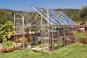Klassisches Gewächshaus-Design mit optimaler Funktion! Ein Stahlsockel bildet die Basis des stabilen Aluminiumrahmens, beide Komponenten sind wartungsarm und korrosionsbeständig. Die Verglasung des großen Gewächshauses besteht komplett aus hochschlagfesten und kristallklaren Polycarbonat-Paneelen — diese Paneele bieten 100 % UV-Schutz, und weisen eine Lichtdurchlässigkeit von 90 % auf. Zwei Belüftungsfenster sorgen für Luftzirkulation, und fördern somit ein effizientes Raumklima. Ein weiterer Vorteil ist die besondere Traufhöhe: Du kannst in bequemer Arbeitshöhe deiner Kreativität beim Bepflanzen freien Lauf lassen, und das Treibhaus mit hochrankenden Pflanzen und Inventar bestücken. Eine besonders großzügige Doppeltür und der barrierearme Eingang erleichtern dir das Rangieren deiner Geräte und Pflanzutensilien. Dank des innovativen Schiebepaneel-Montagesystems hast du das Treibhaus ohne große Vorkenntnisse fix zusammengebaut. Verwandele deinen Garten mit dem beeindruckenden Gewächshaus Octave von Palram - Canopia in eine produktive Nutzfläche.
