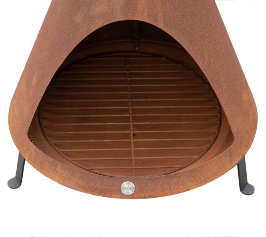 Ob Sommer oder Winter, ein Outdoor Kaminofen für Garten oder Terrasse schafft sofort eine gemütliche Atmosphäre und sorgt für Behaglichkeit. Ideal zum Zusammensitzen mit Familie und Freunden oder für einen romantischen Abend. Der Rost befindet sich auf einer Höhe von 15 cm.