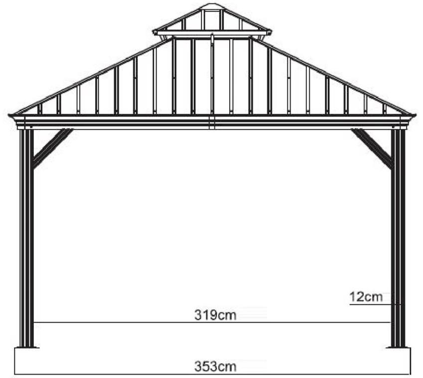 Hierzu raten wir Ihnen, den Pavillon auf einem festen Untergrund – am besten einem Fundament – zu befestigen.