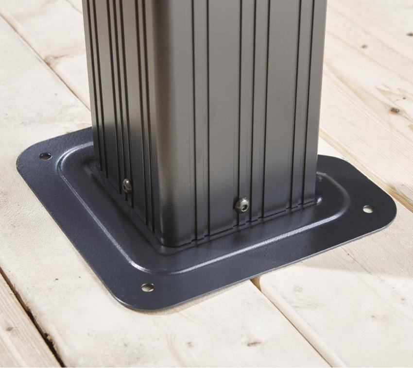 Die Pavillons von mygardenhome.de verfügen dafür bereits über Pfostenplatten mit vorgebohrten Löchern, durch die Sie die Schrauben führen können.
