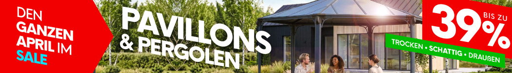 Bis zu 39% Rabatt auf ausgewählte Pavillons & Pergolen - den ganzen April sicherst du dir starke Angebote auf viele Modelle.