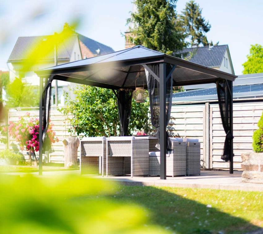 Modern, langlebig und eine tolle Optik sind Merkmale der neuen Aluminiumpavillons vom größten und bekanntesten kanadischen Pavillon-Produzenten Sojag.