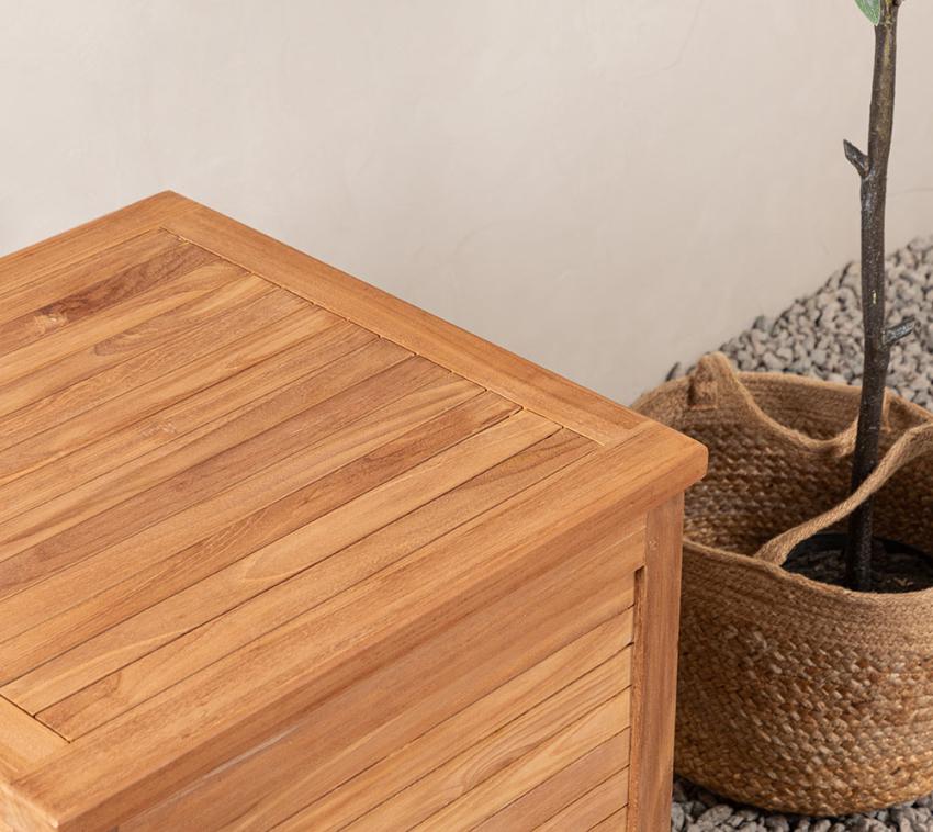 Beachte bitte, dass es sich bei Holz um ein Naturprodukt handelt, sodass es zu minimalen Farbabweichungen kommen kann. Weiterhin empfiehlt es sich, die Kissenbox regelmäßig zu pflegen, um ihre Lebensdauer zu verlängern. Vorzugsweise sollte dazu Teakholzöl verwendet werden, um ihre natürliche Optik möglichst lange aufrechtzuerhalten. Wichtig ist, dass du dabei die Pflegehinweise des Öls befolgst – die genauen Pflegehinweise haben wir dir in einem separaten Dokument zusammengefasst.