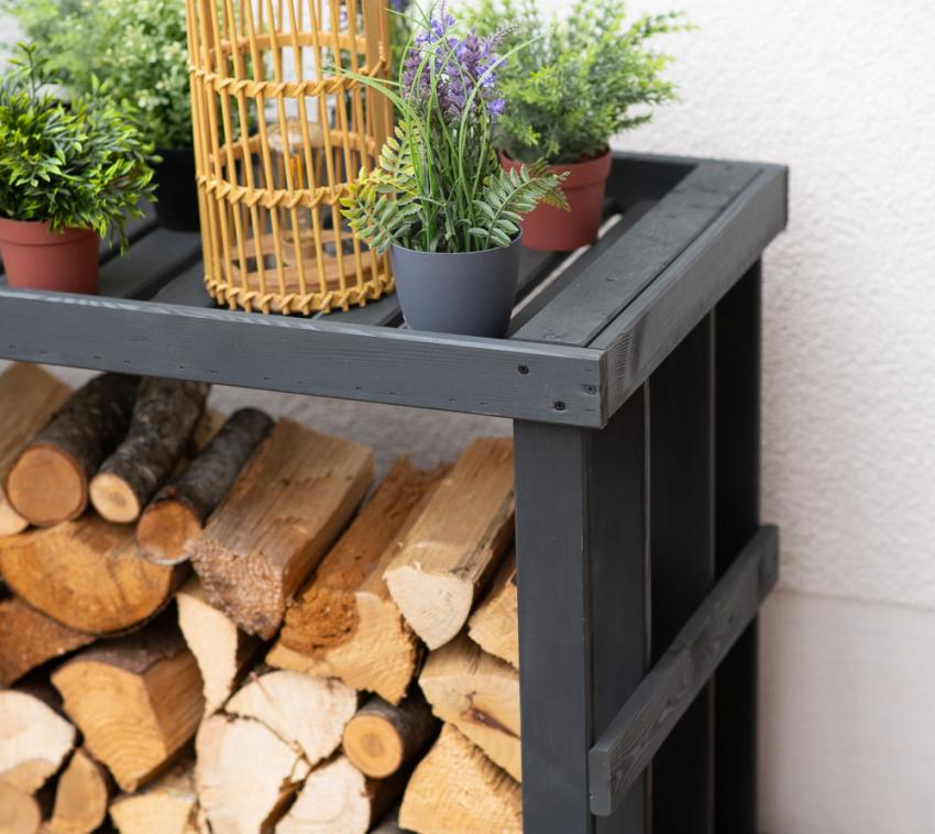 Elegantes Design, einfaches Handling — mit dem ansprechenden Brennholzregal Stephan von Westmann bringst du im Handumdrehen Ordnung in dein Brennholz. Die Holzkonstruktion des Regals ist in modernem Anthrazit gebeizt und passt sich somit selbstverständlich der Umgebung an. Dank der offenen Gestaltung der Lagerfläche kannst du dein Brennholz problemlos darin stapeln, und hast es es somit immer griffbereit. Das Kaminholzregal wird von einer praktischen Ablagefläche getoppt, die du mit Pflanzen, Windlichtern und anderer Dekoration an deinen individuellen Wohnstil anpassen kannst.