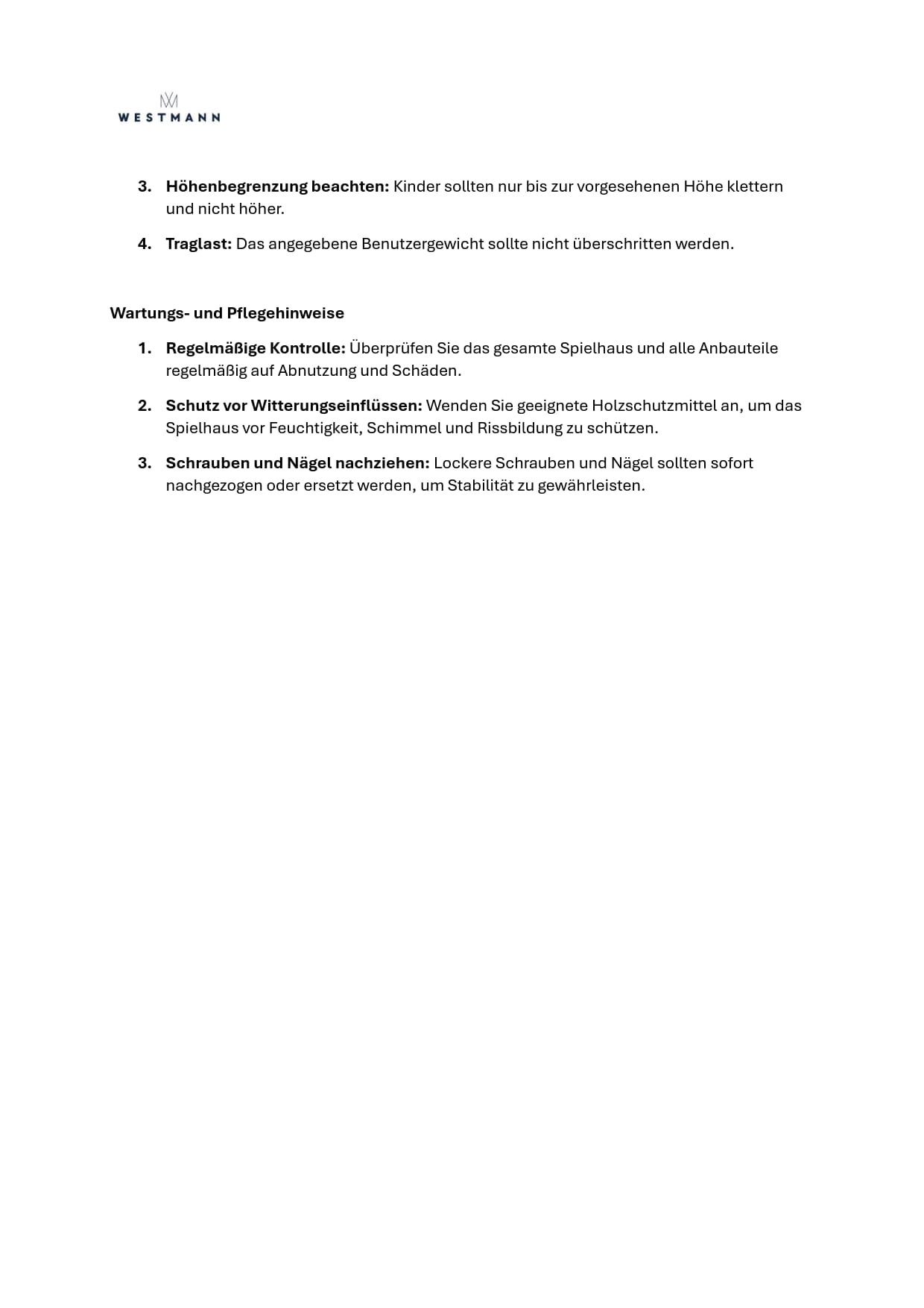 - Das Dach des Spielhauses ist nicht zum Erklettern geeignet.
