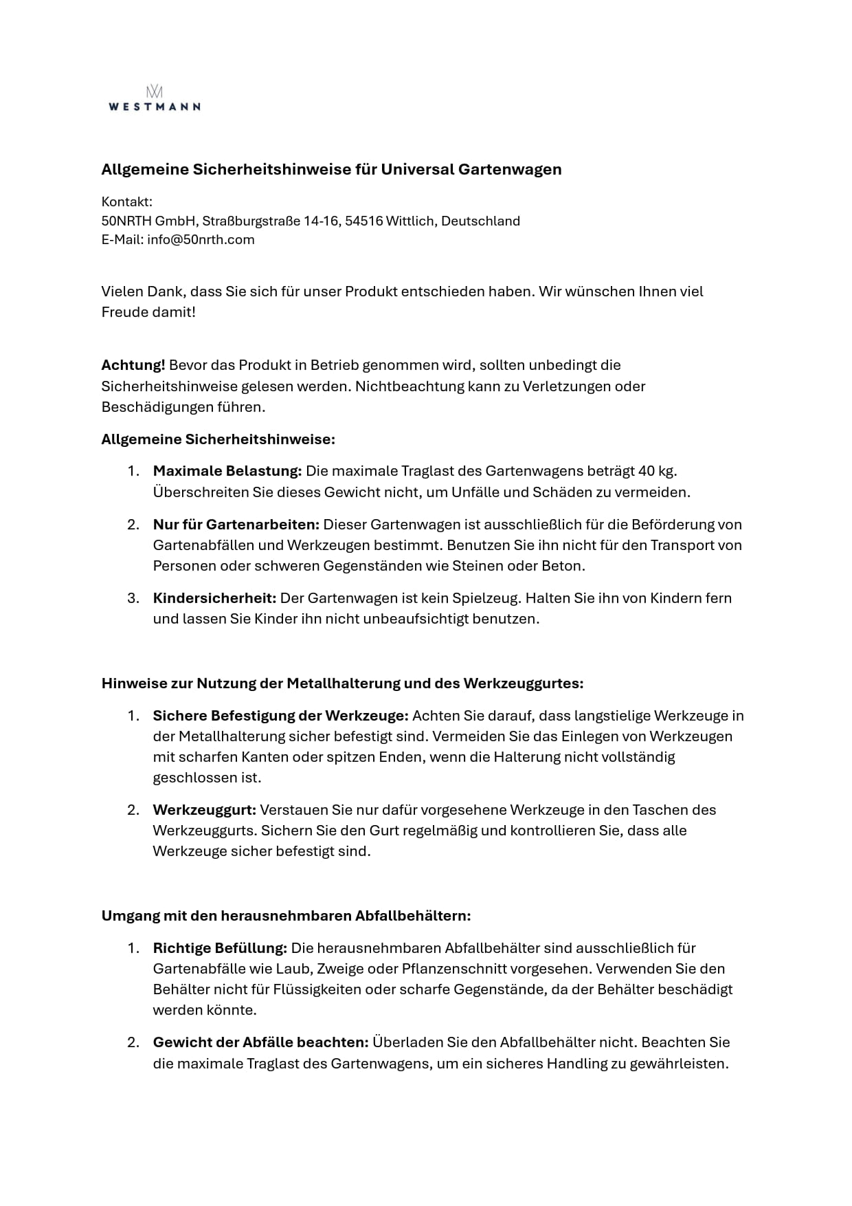 Der Hersteller gewährt auf die mit WESTMANN ausgezeichneten Artikel die gesetzliche Gewährleistung von 24 Monaten. Darüber hinaus gilt für die nachstehenden Produkte ein verlängertes Garantieversprechen.