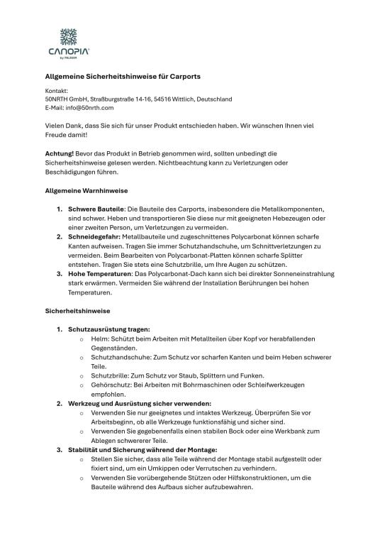 Palram Vordächer (ausgenommen Neo): 3 Jahre