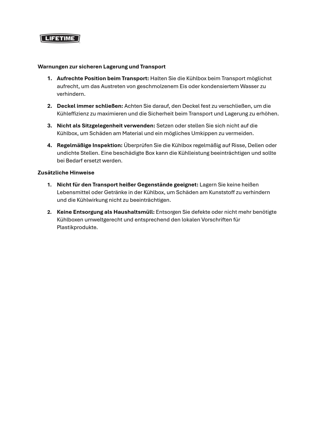 Lifetime Kühlboxen: 5 Jahre