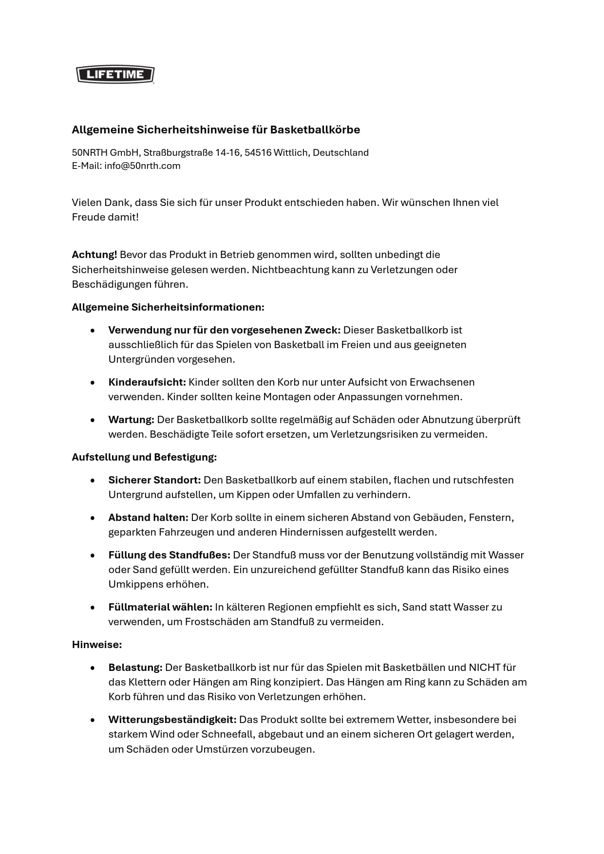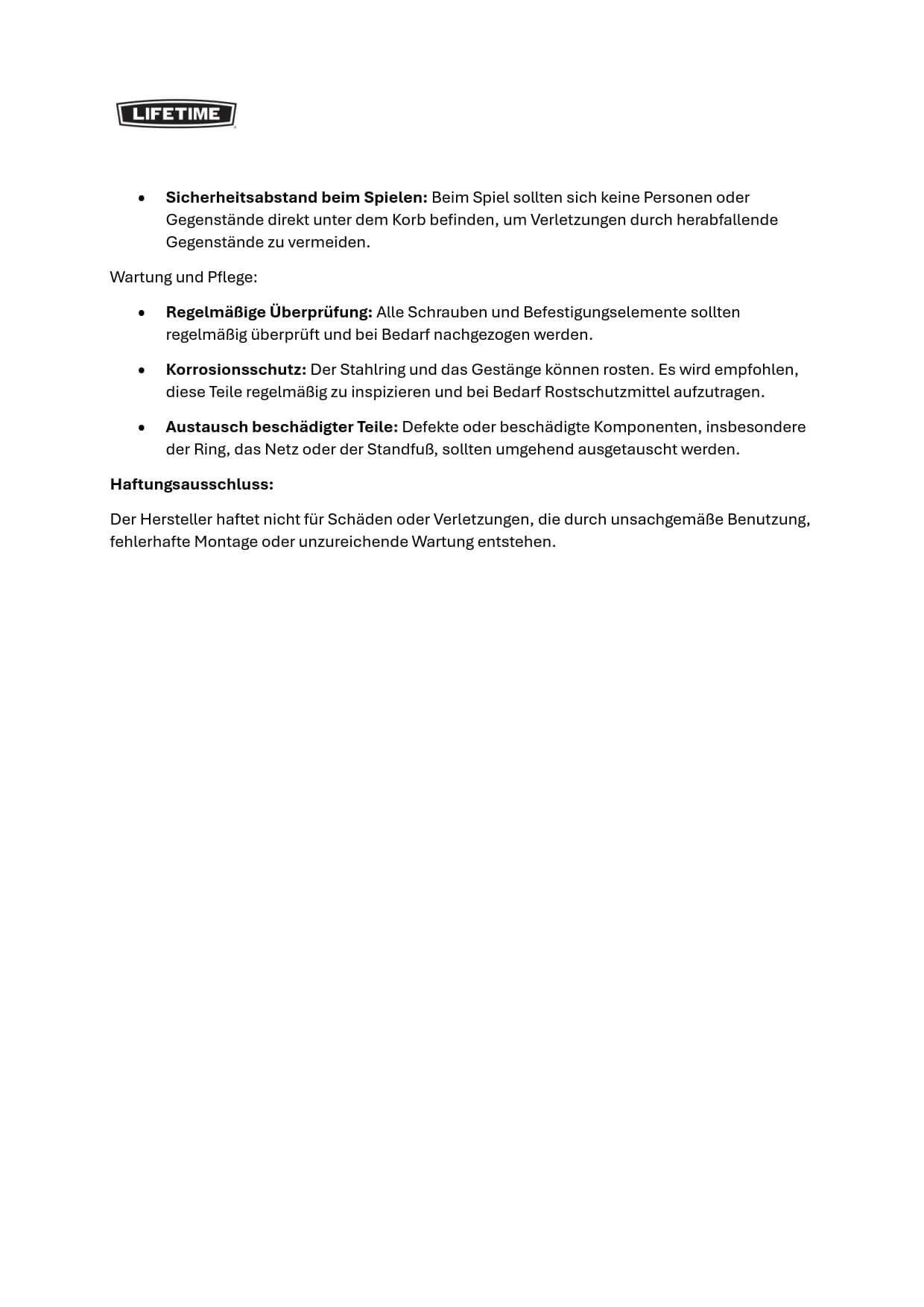 Der Hersteller Lifetime gewährt Garantie (**siehe Garantieübersicht) auf die mit dem Garantieversprechen beworbene Ware. Die Frist für die Berechnung der Garantiedauer beginnt mit Rechnungsdatum. Die Garantieleistung des Herstellers erstreckt sich räumlich auf die Länder Österreich, Schweiz und der Bundesrepublik Deutschland. Treten während dieses Zeitraums Material- oder Herstellungsfehler auf, gewährt der Hersteller als Garantiegeber im Rahmen der Garantie eine der folgenden Leistungen nach seiner Wahl:
