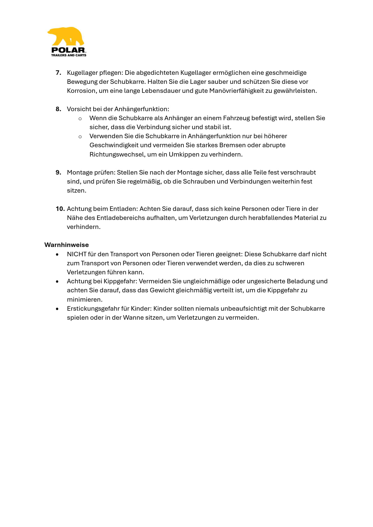 Der Zusammenbau war übrigens in 10 min erledigt. Alles macht einen überaus soliden stabilen Eindruck. Kein sensibles Hightech sondern eben amerikanisches Heavy Duty. Was der Tonka Laster für Kinder ist die Polar Schubkarre für die großen Kinder...