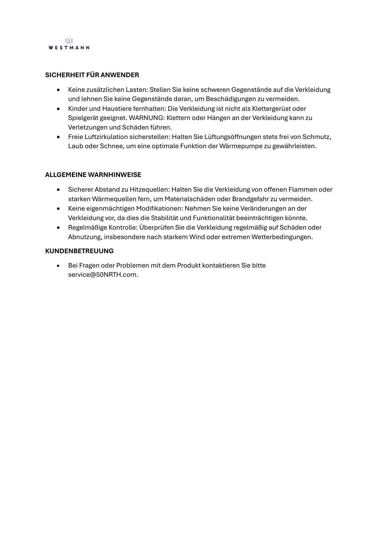 Der Hersteller gewährt auf die mit WESTMANN ausgezeichneten Artikel die gesetzliche Gewährleistung von 24 Monaten. Darüber hinaus gilt für die nachstehenden Produkte ein verlängertes Garantieversprechen.