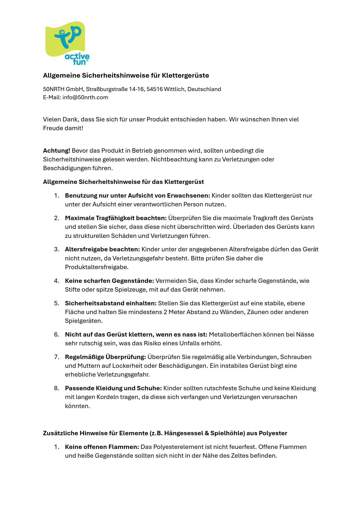 - Kletternetz: Polypropylen | Kunststofffaser mit besonders guter Outdooreignung