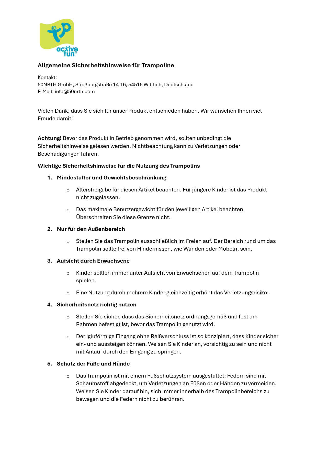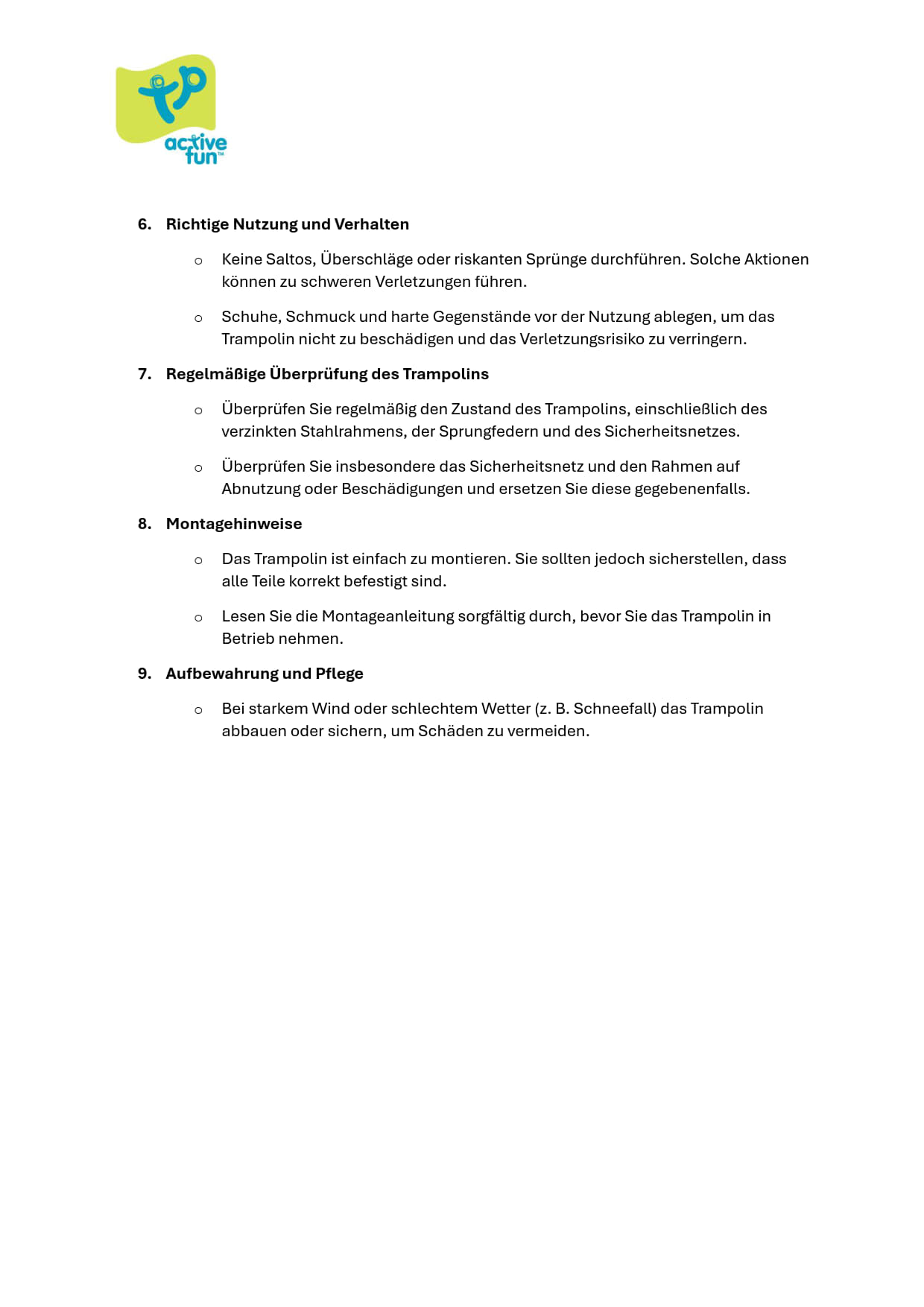 Dein Kind sollte nicht unbeaufsichtigt springen. Bei kleineren Kindern ist erhöhte Aufmerksamkeit geboten!