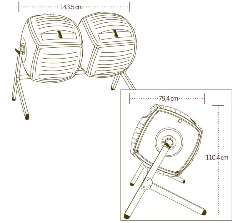 Lifetime Kunststoff Trommelkomposter Kompost-Zwilling | 2er Komposter | 380 L | 79x144x110 cm