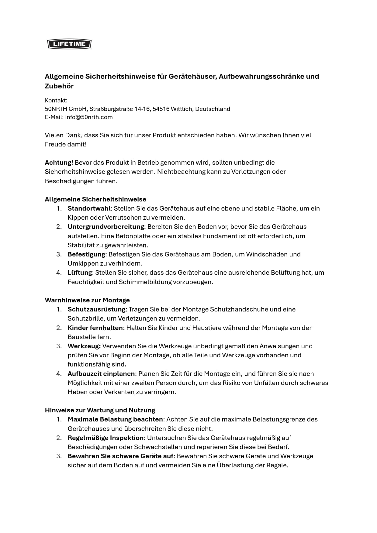 Lifetime Gerätehäuser: 10 JahreLifetime Kissenboxen: 5 Jahre