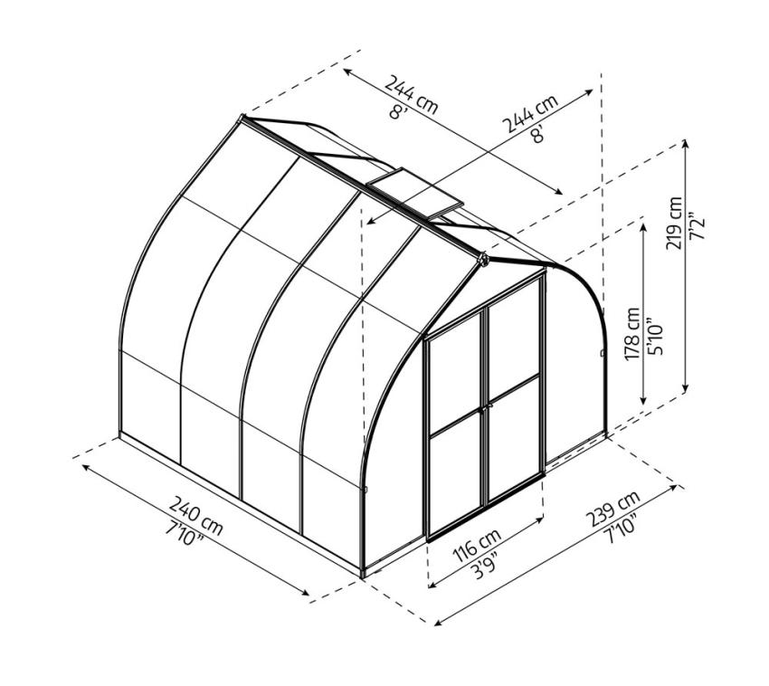 Palram - Canopia Aluminium Gewächshaus Bella 88 | Silber | 240x239x219 cm