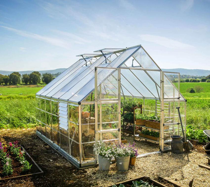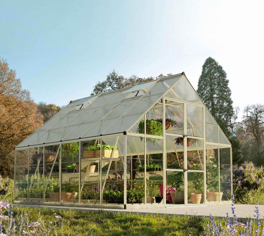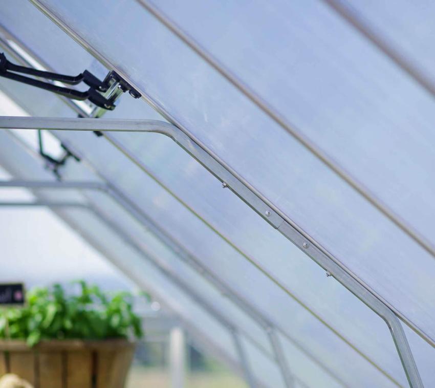 Das schnell montierte Gewächshaus Balance von Palram - Canopia punktet mit einer robusten Aluminium-Konstruktion, verzinktem Stahlsockel sowie hochwertigen Kunststoff-Paneelen.