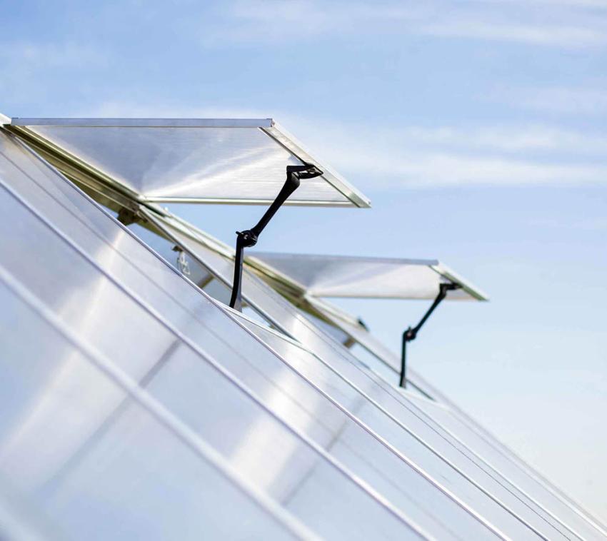 Das Gewächshaus Balance von Palram - Canopia vereint klassisches Gewächshaus-Design mit optimaler Funktion, und verwandelt deinen Garten in eine produktive Nutzfläche! Ein Stahlsockel bildet die Basis des stabilen Aluminiumrahmens, beide Komponenten sind wartungsarm und korrosionsbeständig. Für die Verglasung kommen 2 verschiedene Polycarbonat-Paneele zum Einsatz: Das Dach ist mit 100 % UV-beständigen Polycarbonat-Doppelstegplatten eingedeckt. Die Seitenwände bestehen aus kristallklaren Polycarbonat-Paneelen – die Lichtdurchlässigkeit dieser nahezu unzerbrechlichen Paneele liegt bei 70 %. 4 Belüftungsfenster sorgen für Luftzirkulation und ein effizientes Raumklima. Ein weiterer Vorteil ist die besondere Traufhöhe: Du kannst in bequemer Arbeitshöhe deiner Kreativität beim Bepflanzen freien Lauf lassen, und das Treibhaus mit hochrankenden Pflanzen und Inventar bestücken. Eine besonders großzügige Doppeltür und der barrierearme Eingang erleichtern dir das Rangieren deiner Geräte und Pflanzutensilien. Dank des innovativen Schiebepaneel-Montagesystems hast du das Treibhaus ohne große Vorkenntnisse fix zusammengebaut.