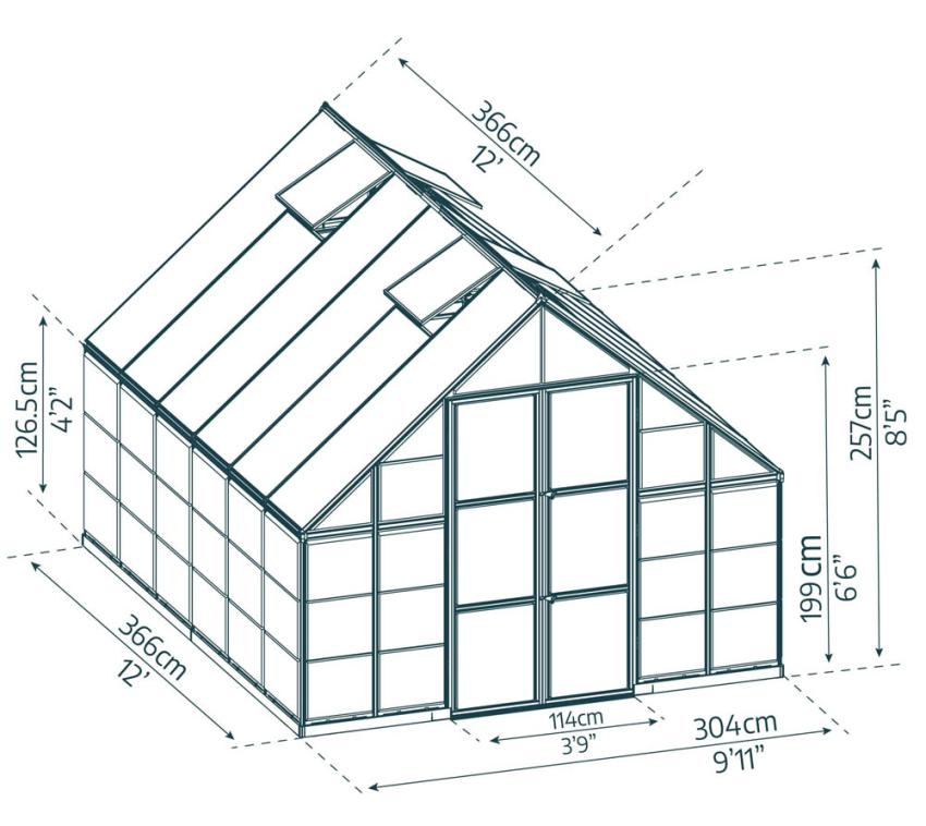 Palram - Canopia Aluminium Gewächshaus Balance 1012 | Silber | 366x304x257 cm