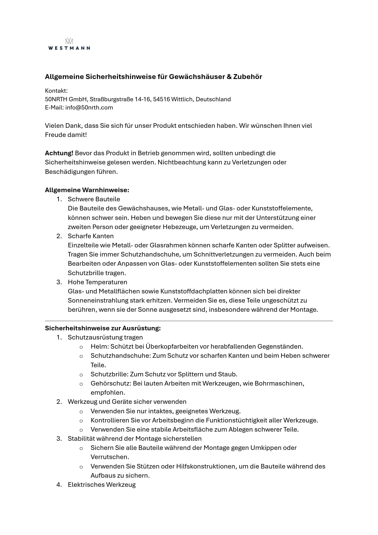 Der Hersteller gewährt auf die mit WESTMANN ausgezeichneten Artikel die gesetzliche Gewährleistung von 24 Monaten. Darüber hinaus gilt für die nachstehenden Produkte ein verlängertes Garantieversprechen.