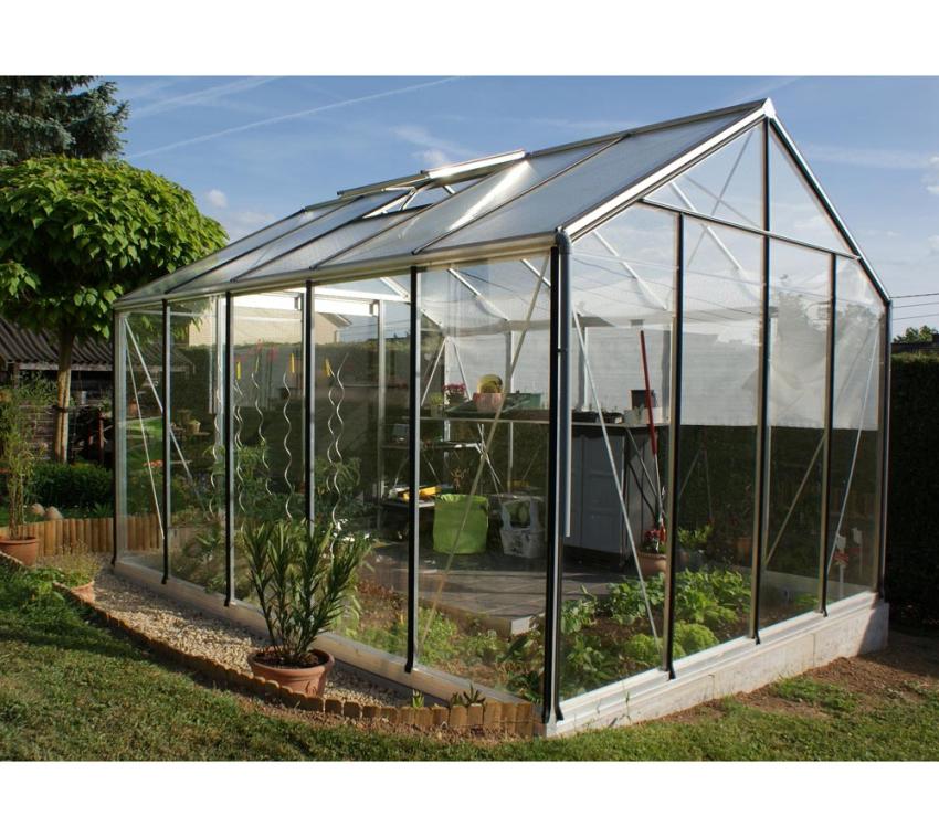 Das kristallklare 4mm Gartenblankglas an den Seiten und das 4mm Nörpelglas am Dach werden wind- und regendicht eingesetzt und garantieren durch die hohe Lichtdurchlässigkeit und sehr gute Wärmeisolation beste Bedingungen für die Pflanzen. Zudem schützen sie vor schädlicher UV-Strahlung.