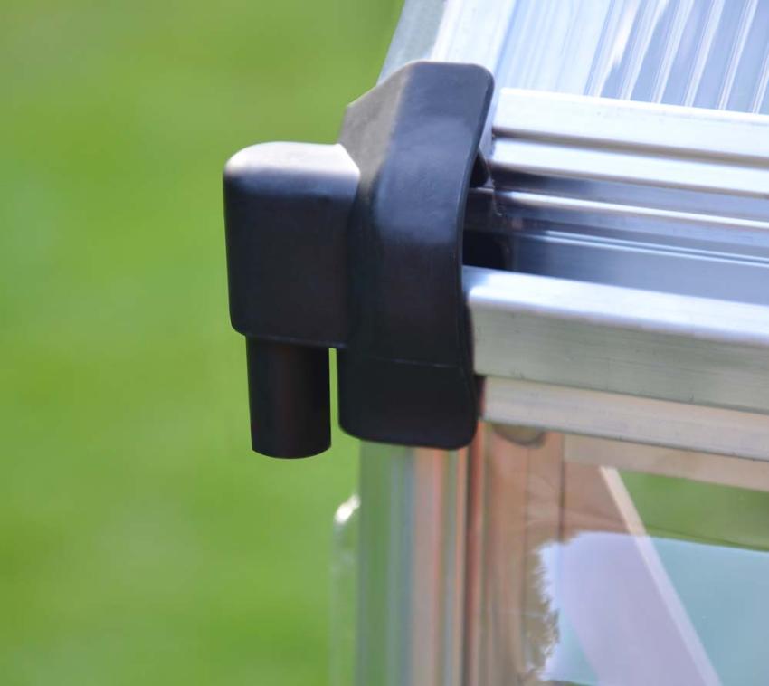 Das Gewächshaus Hybrid von Palram - Canopia vereint klassisches Gewächshaus-Design mit optimaler Funktion, und verwandelt deinen Garten in eine produktive Nutzfläche! Ein Stahlsockel bildet die solide Basis des stabilen Aluminiumrahmens, beide Komponenten sind wartungsarm und korrosionsbeständig. Für die Verglasung kommen 2 verschiedene, bruchsichere Polycarbonat-Paneele zum Einsatz: Das Dach ist mit 100 % UV-beständigen Polycarbonat-Doppelstegplatten eingedeckt. Die Seitenwände bestehen aus kristallklaren Polycarbonat-Paneelen — die Lichtdurchlässigkeit dieser Paneele liegt bei 90 %! Das Belüftungsfenster sorgt für Luftzirkulation, und fördert somit ein optimales Raumklima. Ein weiterer Vorteil ist die besondere Traufhöhe: Du kannst in bequemer Arbeitshöhe deiner Kreativität beim Bepflanzen freien Lauf lassen, und das Treibhaus großzügig mit Pflanzen und Inventar bestücken. Dank des innovativen Schiebepaneel-Montagesystems hast du das Treibhaus ohne große Vorkenntnisse fix zusammengebaut.