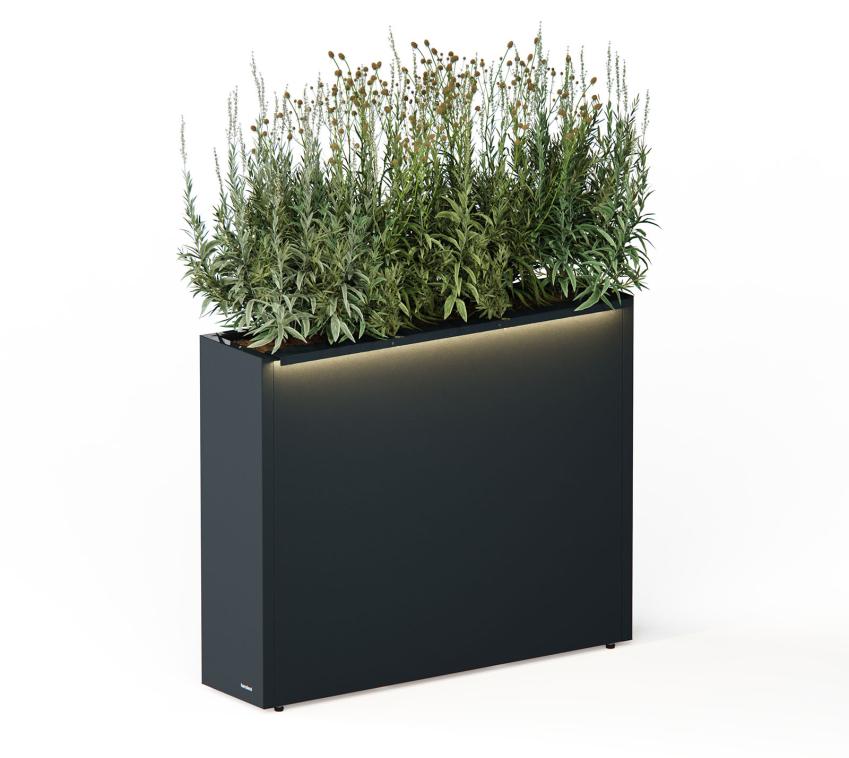 Die integrierte LED-Beleuchtung hebt Formen, Farben und Texturen deiner Pflanzen hervor. Sie schafft am Abend eine warme, atmosphärische Lichtwirkung und setzt den Pflanzkasten sowohl tagsüber als auch nachts als modernes Designobjekt in Szene.