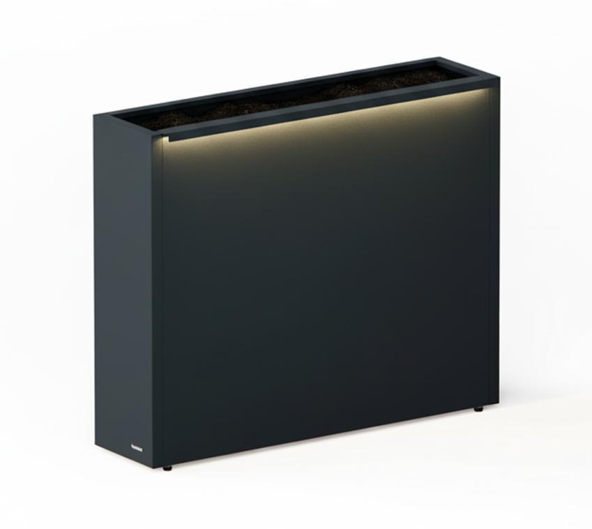 Der Pflanzkasten ist aus feuerverzinktem und pulverbeschichtetem Stahl gefertigt, was ihn beständig gegen Witterung macht. Er ermöglicht dir die ästhetische Präsentation deiner Pflanzenarrangements und überzeugt mit integrierter LED-Beleuchtung. Ein Pluspunkt, denn so kommt dein Pflanzkübel auch abends bei stimmungsvoller Lichtatmosphäre zur Geltung. Ein weiterer Vorteil dieses Sets ist die Filztasche aus recyceltem Polyester – damit schützt du deinen Pflanzkübel und sorgst für sauberes, gesundes Pflanzenwachstum. Außerdem ist der Divider mit einem verstellbaren Zwischenboden ausgestattet, wodurch du noch flexibler in der Bepflanzung bist.