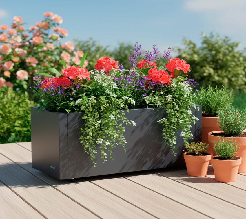 Modern, elegant, vielseitig — der Metall Blumenkasten Balcony M von Herstera Garden verbindet zeitloses Design mit hochwertigen Materialien und setzt einen stilvollen Akzent in deinem Außenbereich.