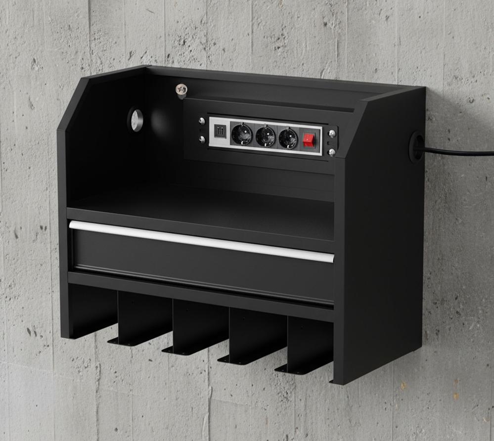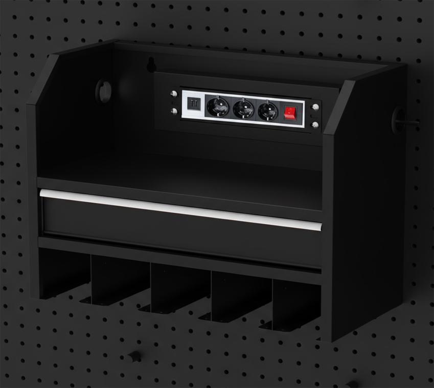 Die kleine Schublade schafft zusätzlichen Stauraum für kleinteiliges Zubehör, Ladegeräte und Co. So bleibt deine Werkbank frei und du kannst dich voll auf dein Projekt konzentrieren.