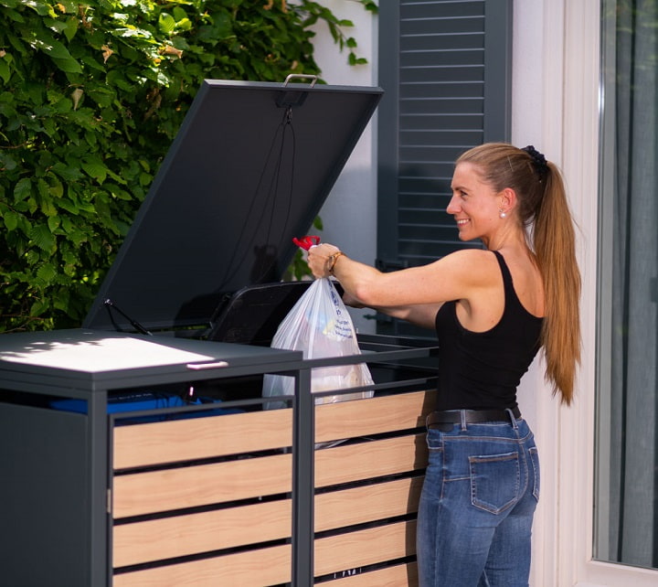 - Geruchsreduktion: Durch die Abdeckung wird unangenehmer Geruch eingedämmt, der von den Mülltonnen ausgehen kann.