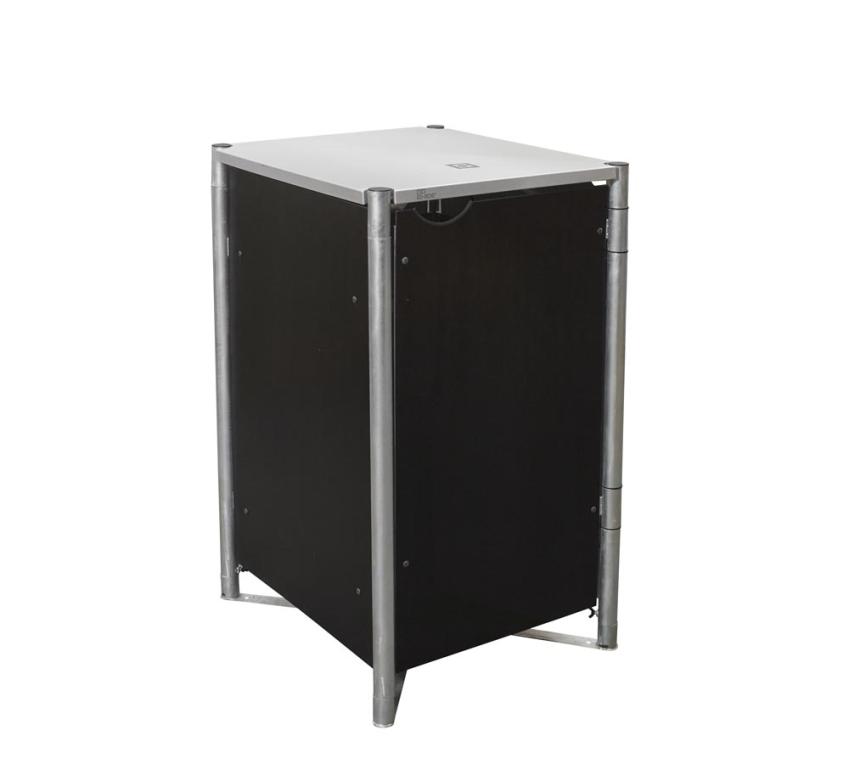 Extrem stabile Mülltonneneinhausung oder Gerätebox aus einem feuerverzinkten Stahlgestell und Seitenwänden aus Aluminium Verbundplatten. Die elegante Optik ist wetter- und wartungsresistent und verspricht Beständigkeit gegen Feuchtigkeit.