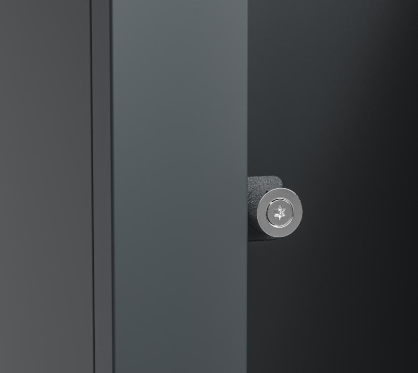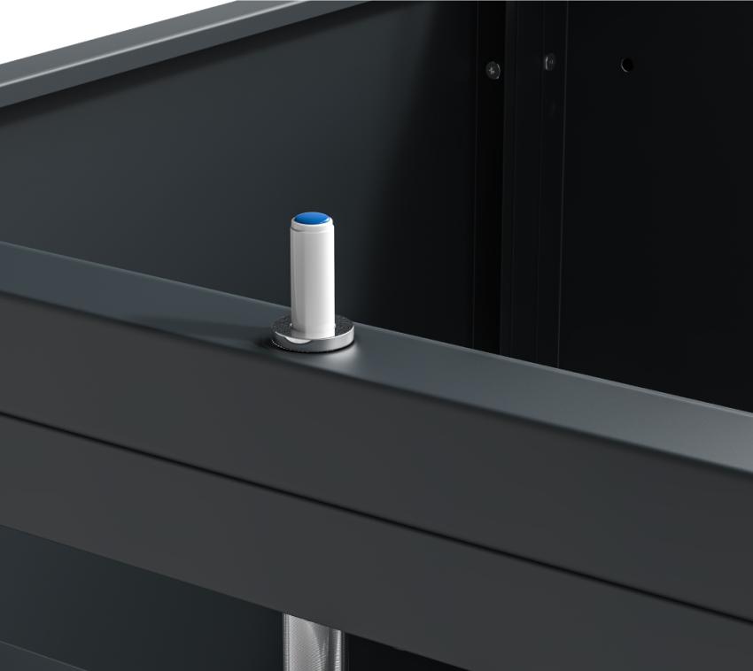- Robuste Konstruktion: Korpus aus pulverbeschichtetem Stahl