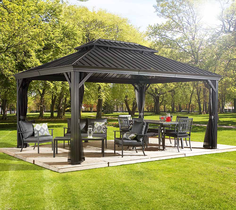 Mehr Zeit im Garten, mehr Qualitätszeit – veredle deine Zeit und deinen Garten mit dem Pavillon Messina von Sojag!