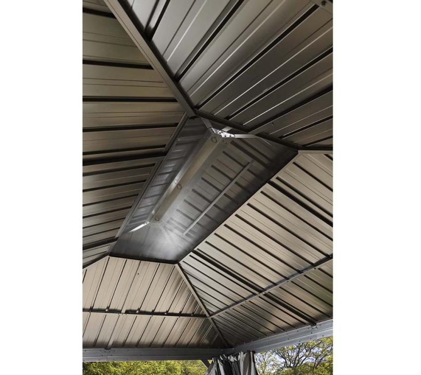 - Solide Dacheindeckung aus galvanisiertem Stahlblech.