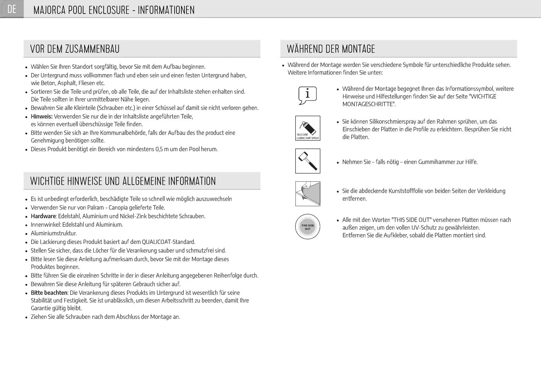 Der Hersteller Palram gewährt Garantie (**siehe Garantieübersicht) auf die mit dem Garantieversprechen beworbene Ware. Die Frist für die Berechnung der Garantiedauer beginnt mit Rechnungsdatum. Die Garantieleistung des Herstellers erstreckt sich räumlich auf die Länder Österreich, Schweiz und der Bundesrepublik Deutschland. Treten während dieses Zeitraums Material- oder Herstellungsfehler auf, gewährt der Hersteller als Garantiegeber im Rahmen der Garantie eine der folgenden Leistungen nach seiner Wahl: