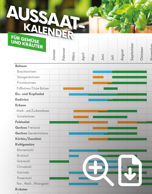 | Aussaat ab März | Aussaat ab Mai | Aussaat ab September |