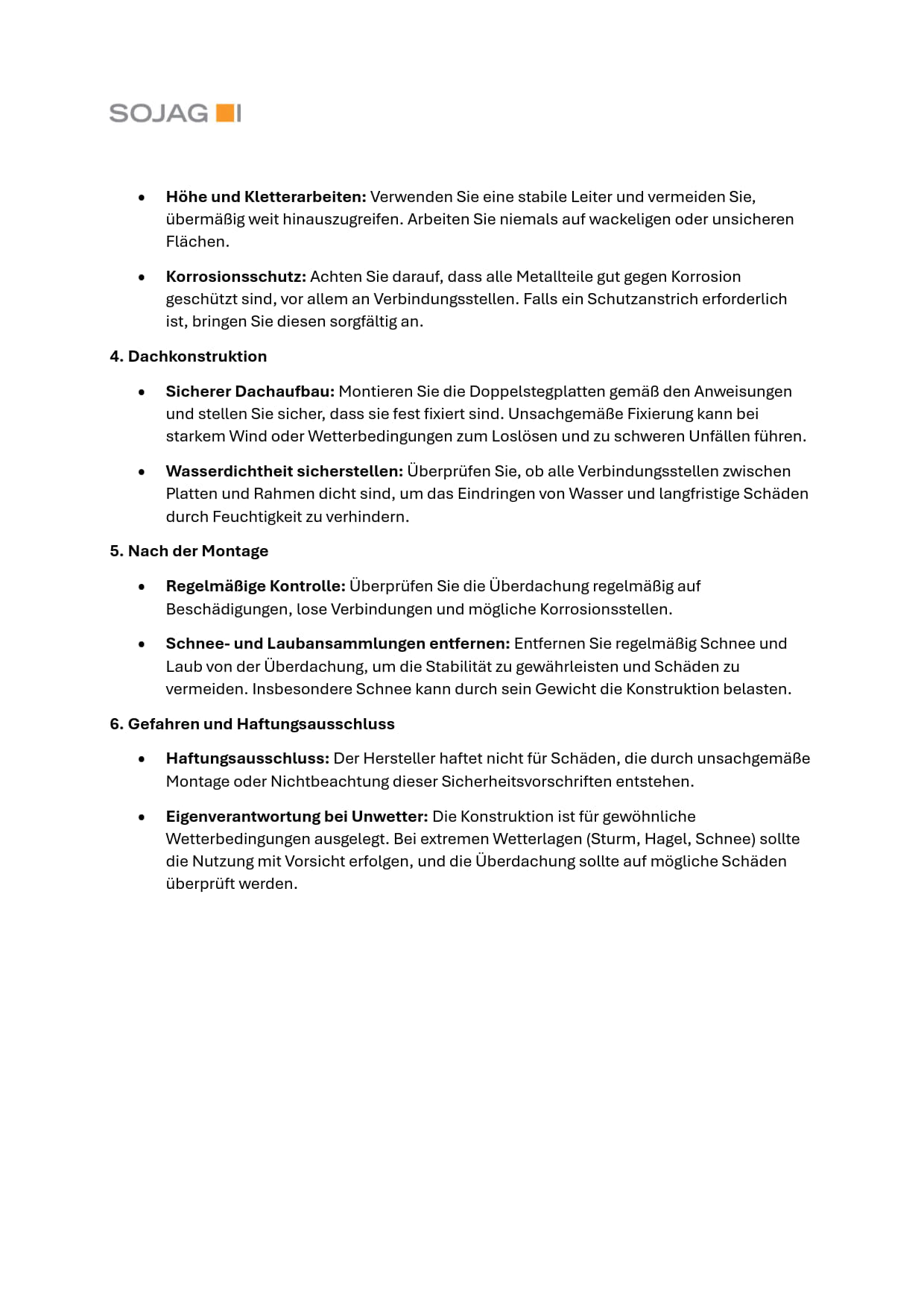 Der Hersteller Sojag gewährt Garantie (**siehe Garantieübersicht) auf die mit dem Garantieversprechen beworbene Ware. Die Frist für die Berechnung der Garantiedauer beginnt mit Rechnungsdatum. Die Garantieleistung des Herstellers erstreckt sich räumlich auf die Länder Österreich, Schweiz und die Bundesrepublik Deutschland. Treten während dieses Zeitraums Material- oder Herstellungsfehler auf, gewährt der Hersteller als Garantiegeber im Rahmen der Garantie eine der folgenden Leistungen nach seiner Wahl: